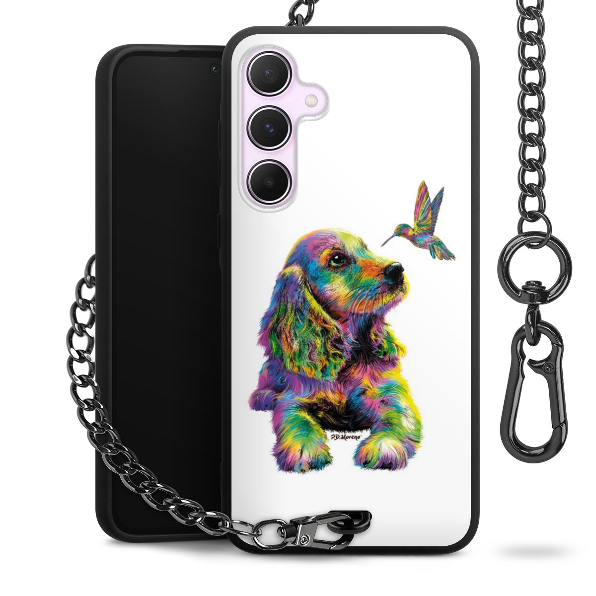 • Mattschwarze Handyhülle mit Metallkette