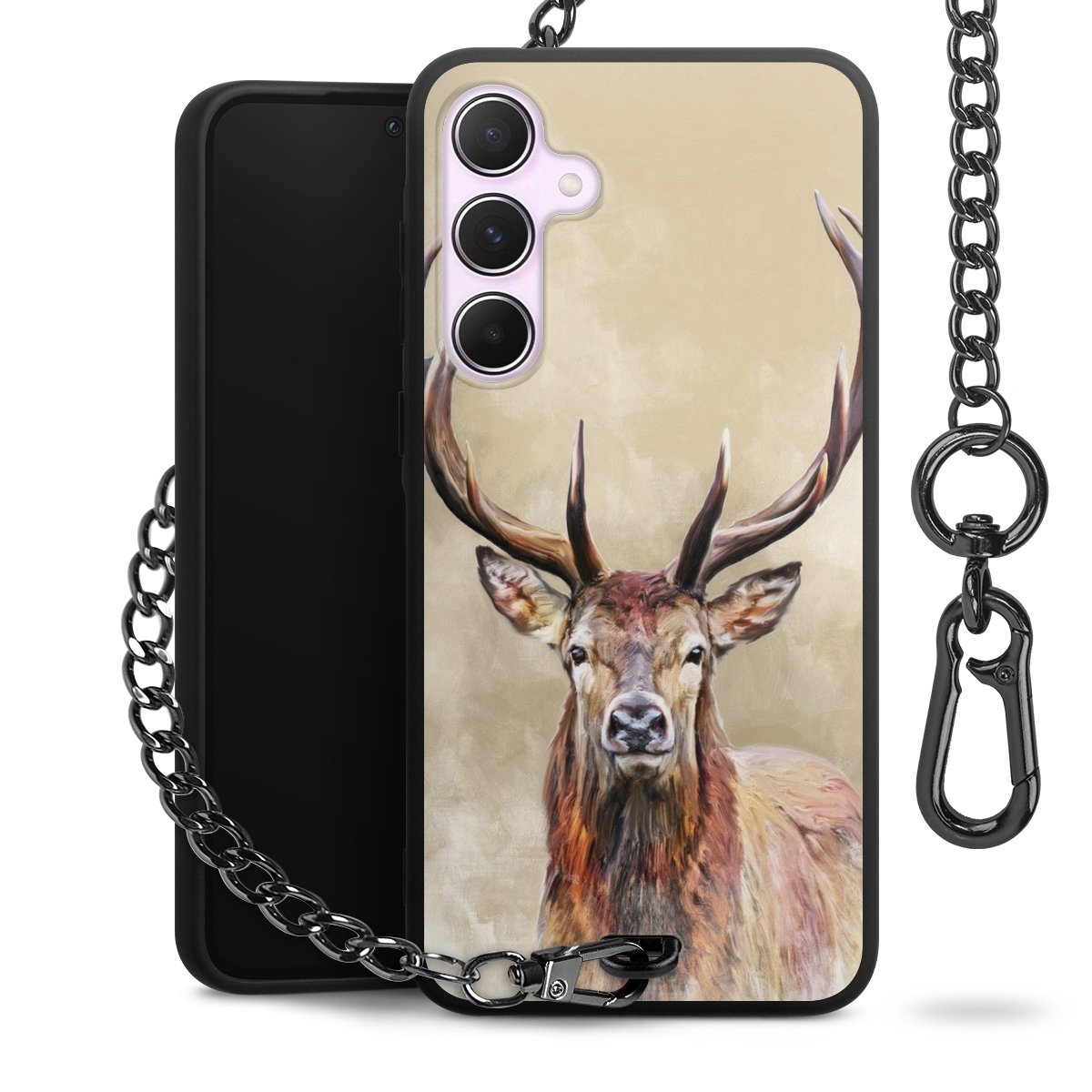 • Mattschwarze Handyhülle mit Metallkette