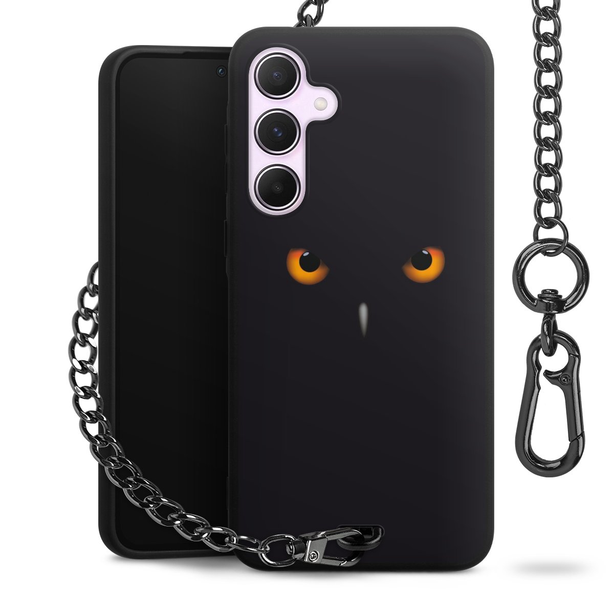 - Mattschwarze Handyhülle mit Metallkette