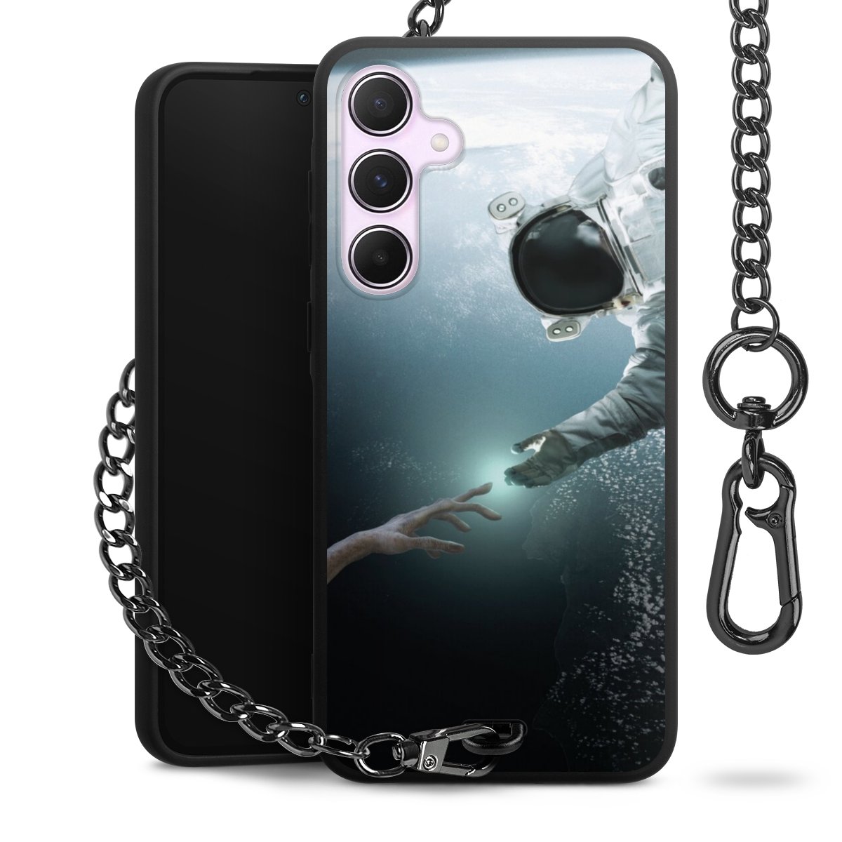 - Mattschwarze Handyhülle mit Metallkette