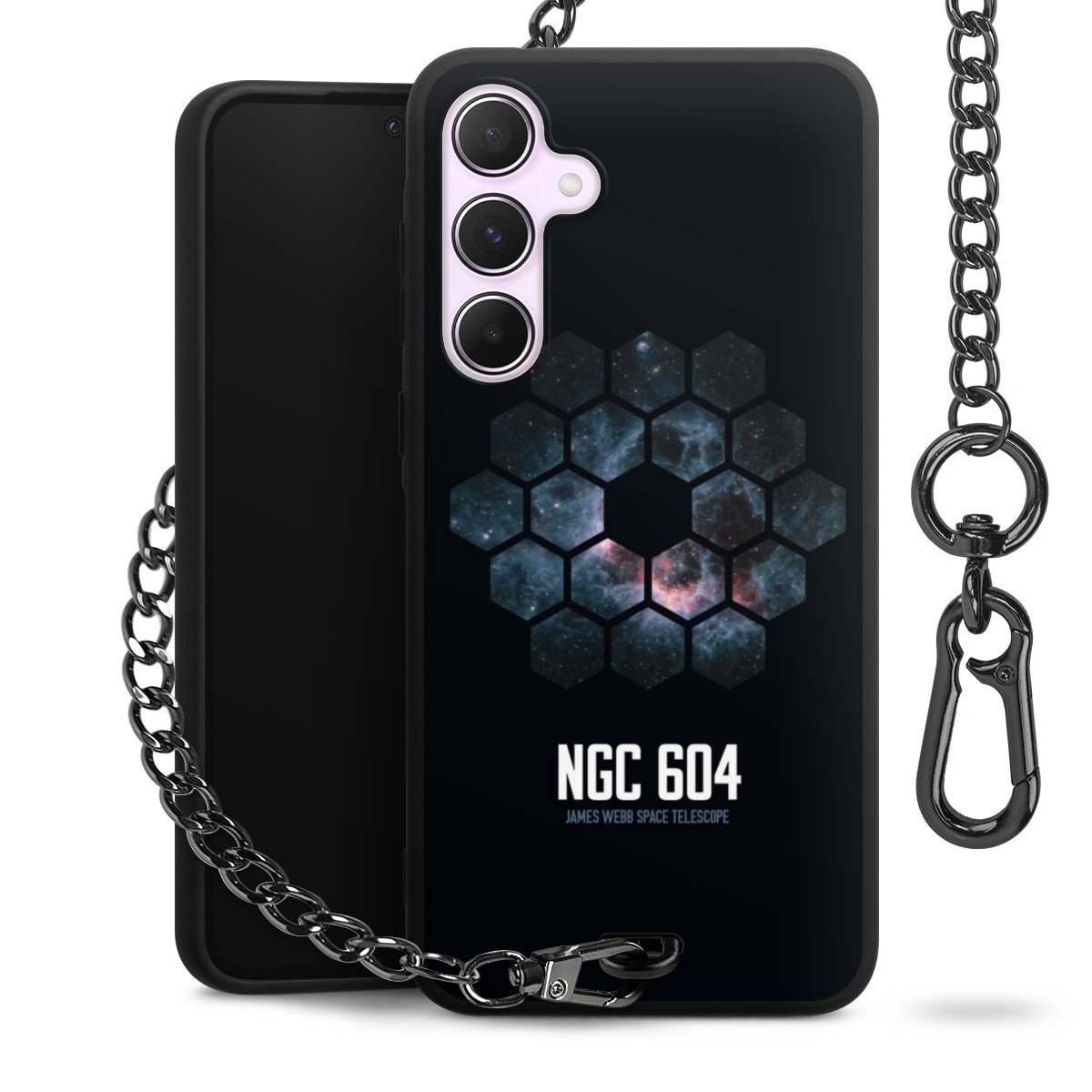 - Mattschwarze Handyhülle mit Metallkette