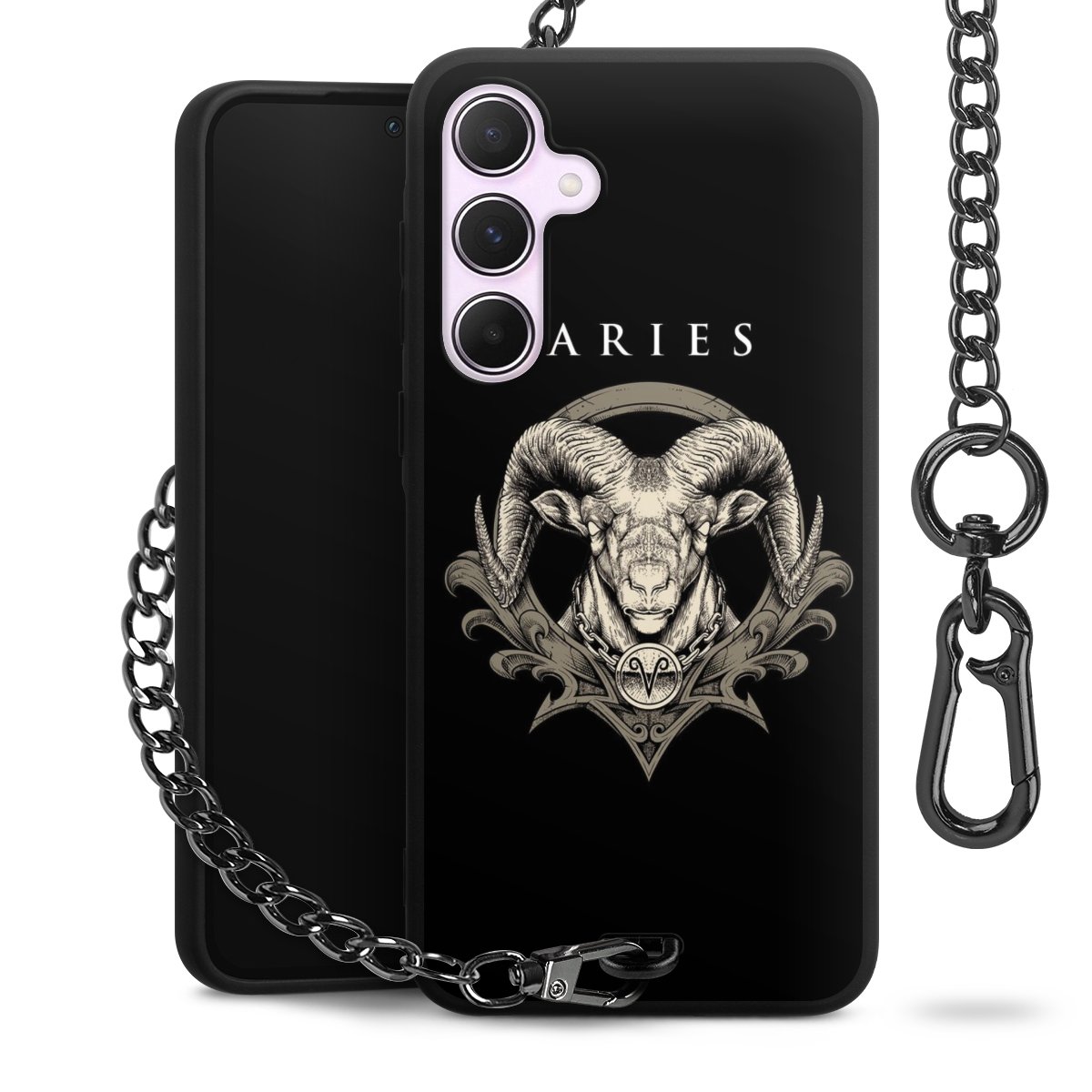 • Mattschwarze Handyhülle mit Metallkette