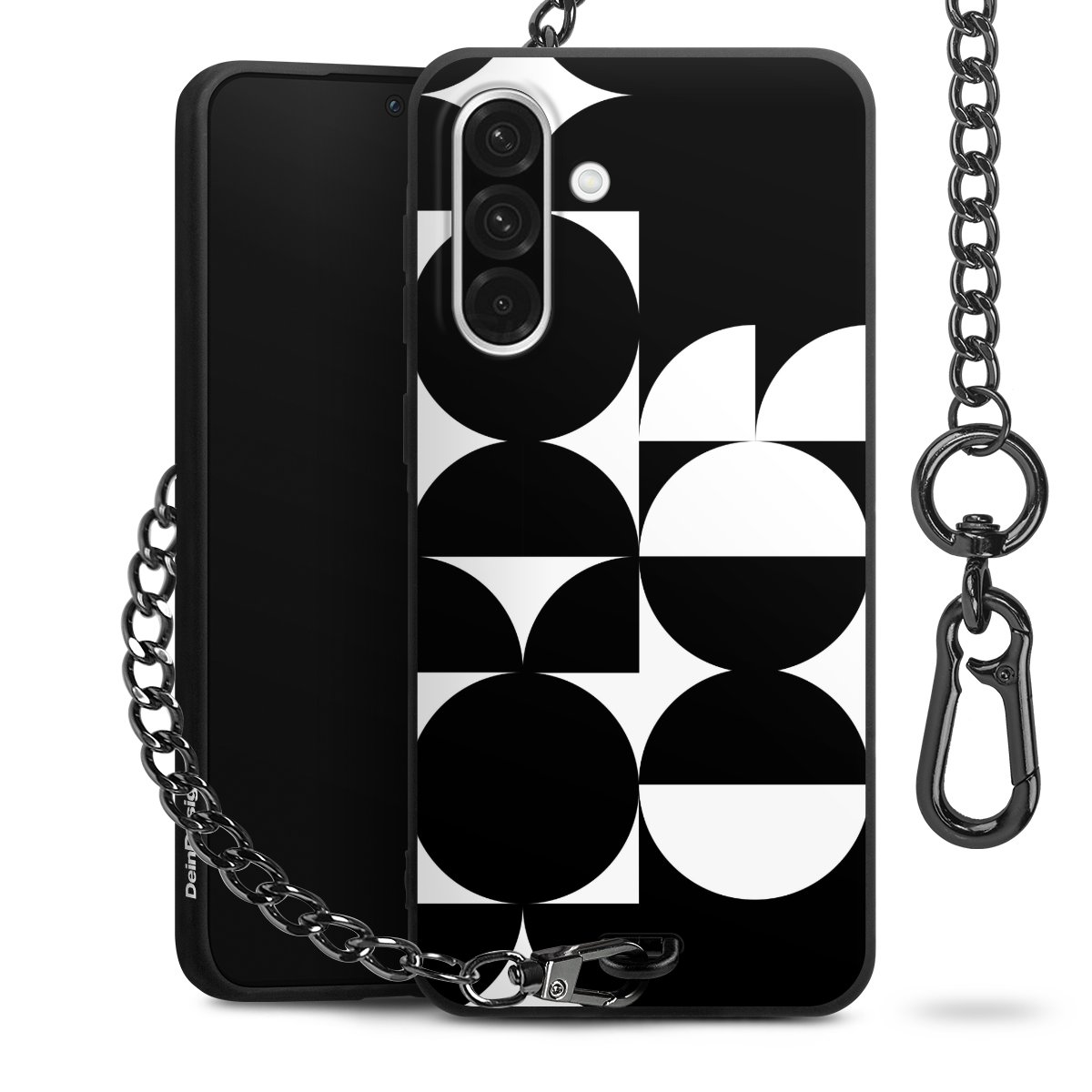 - Mattschwarze Handyhülle mit Metallkette