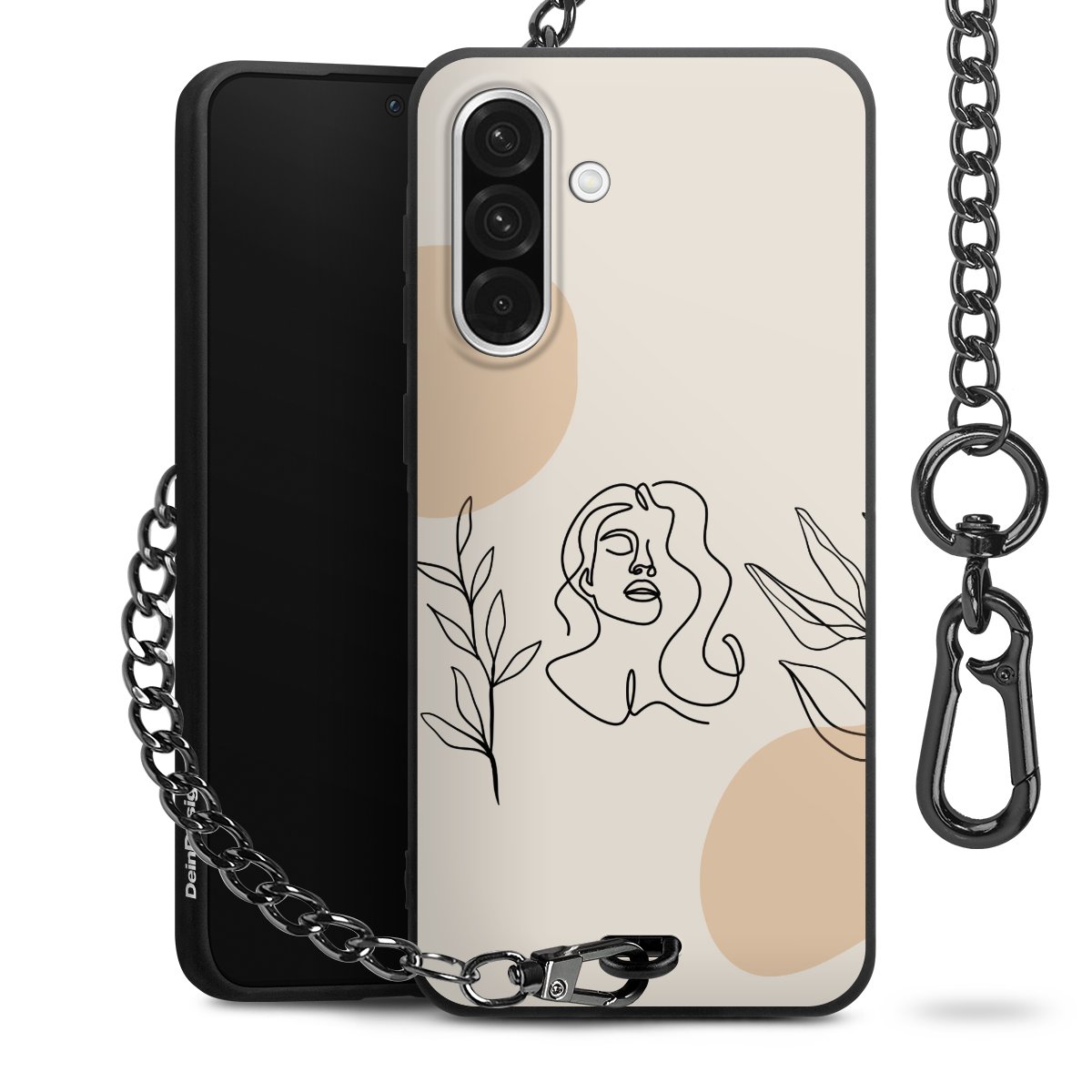 - Mattschwarze Handyhülle mit Metallkette