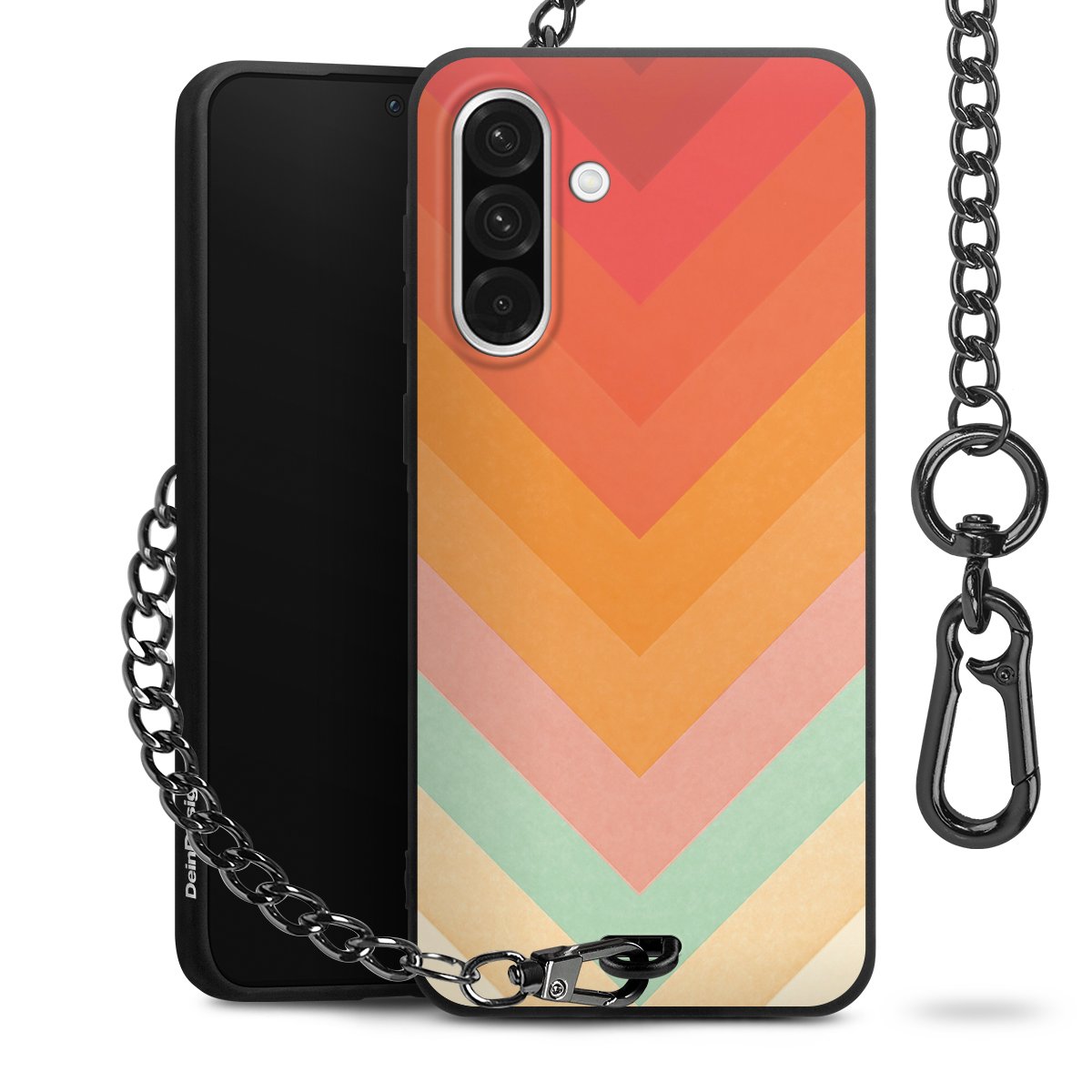 • Mattschwarze Handyhülle mit Metallkette