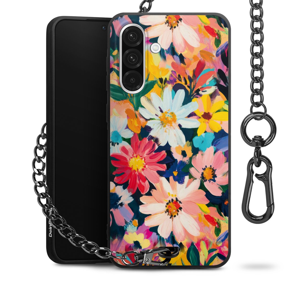 • Mattschwarze Handyhülle mit Metallkette