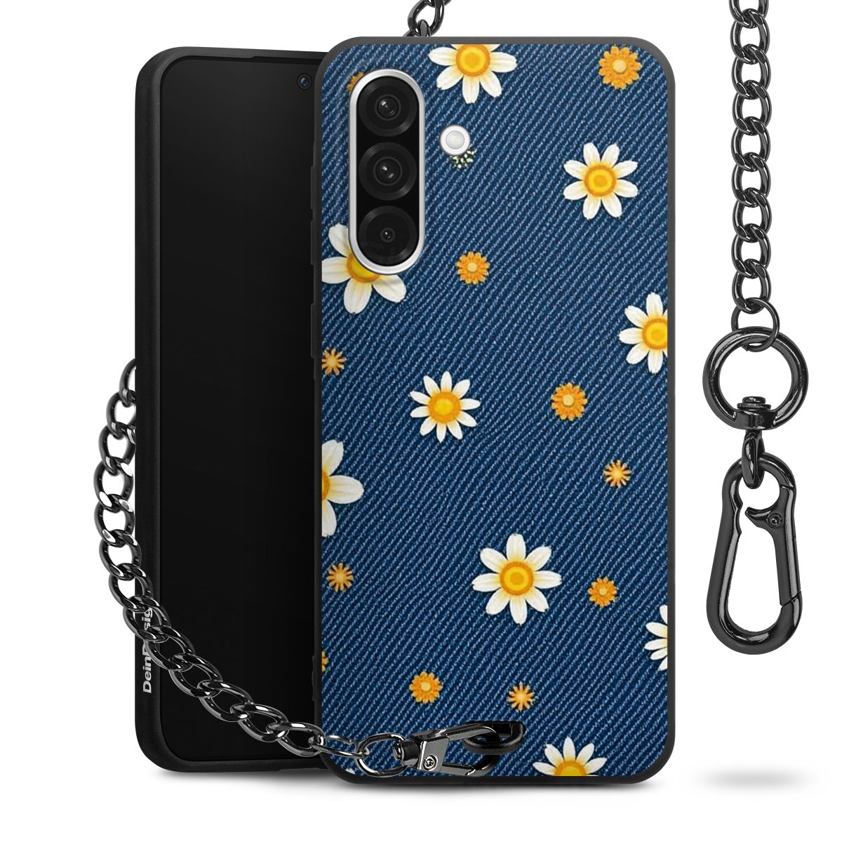 - Mattschwarze Handyhülle mit Metallkette