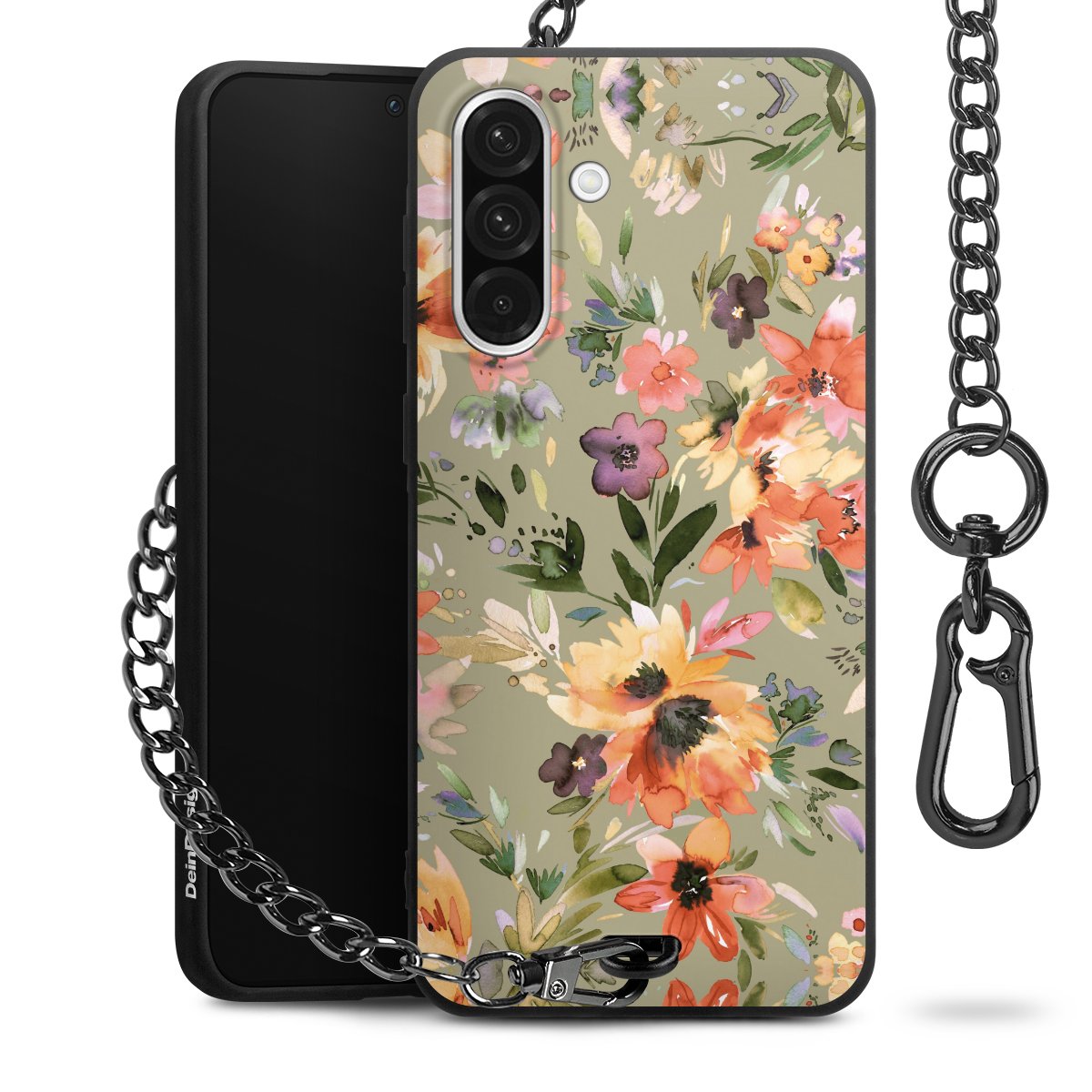 • Mattschwarze Handyhülle mit Metallkette