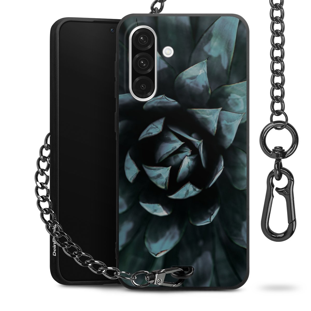 - Mattschwarze Handyhülle mit Metallkette