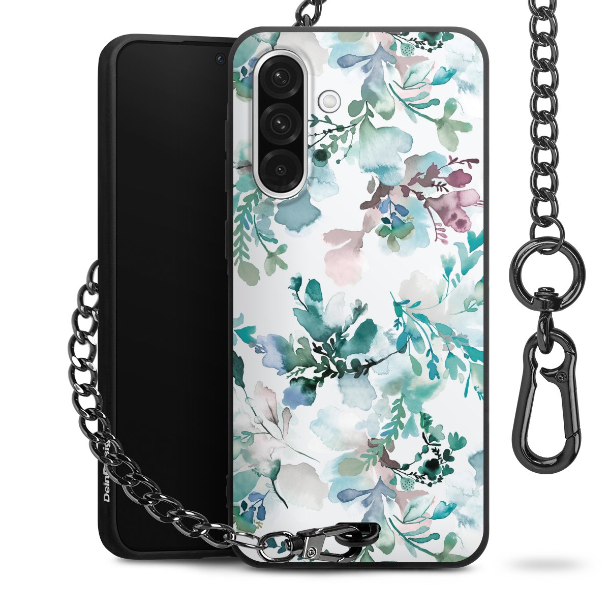 • Mattschwarze Handyhülle mit Metallkette