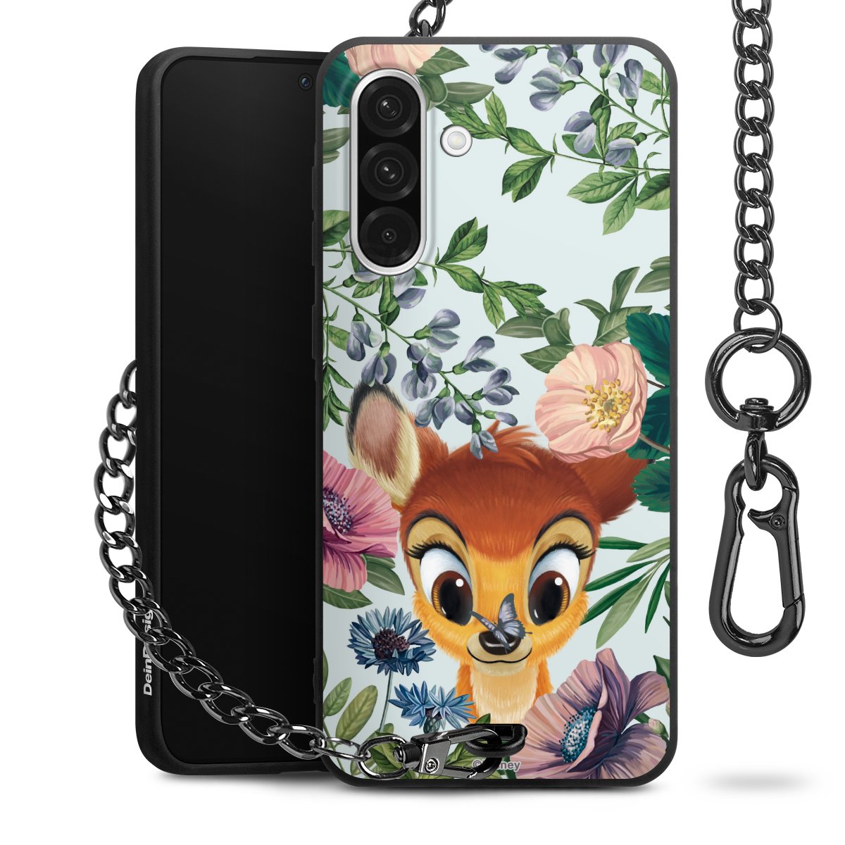 Die Handyhülle verfügt über eine mittig am unteren Rand platzierte Öse, an der die Metallkette stabil befestigt ist. Bestelle die Hülle einfach für Dein Smartphone-Modell, dann passt sie wie angegossen und Du brauchst sie bloß einmal anzudrücken. Handy in die Tasche, Karabiner an den Hosenbund – schon kann die Party starten.