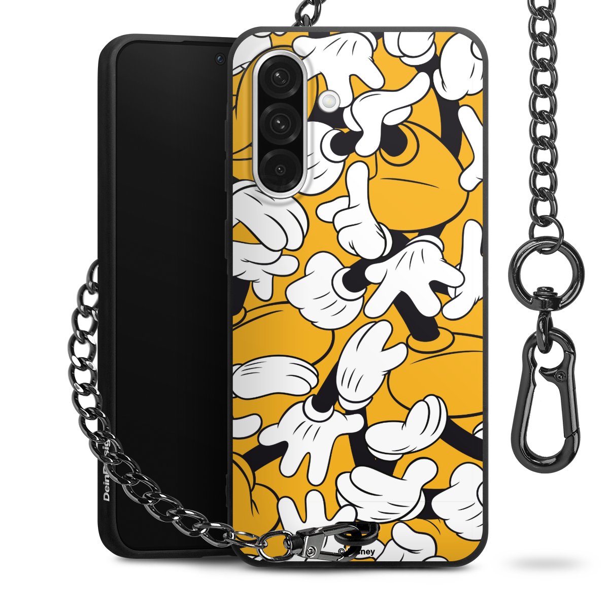 Die mattschwarze Silikon-Handyhülle besteht aus robustem TPU (thermoplastisches Polyurethan). Sie ist flexibel und schützt Dein Smartphone vor Stößen und Kratzern. Die Kette sowie der Karabinerhaken sind aus Metall in Gunmetal-Optik gefertigt. Für dieses Produkt kommen ausschließlich TÜV-geprüfte Materialien zum Einsatz.