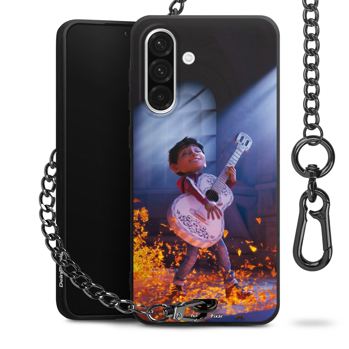 - Mattschwarze Handyhülle mit Metallkette