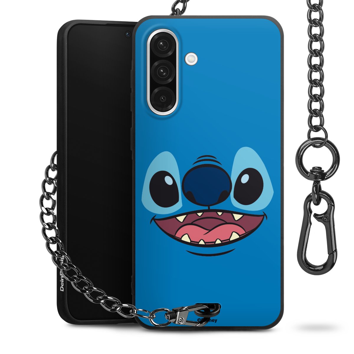 Die Handyhülle verfügt über eine mittig am unteren Rand platzierte Öse, an der die Metallkette stabil befestigt ist. Bestelle die Hülle einfach für Dein Smartphone-Modell, dann passt sie wie angegossen und Du brauchst sie bloß einmal anzudrücken. Handy in die Tasche, Karabiner an den Hosenbund – schon kann die Party starten.