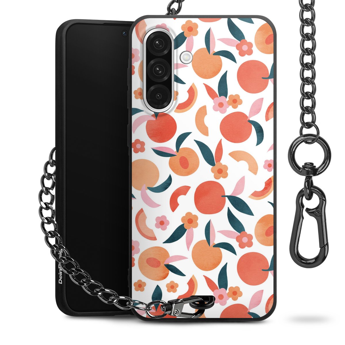 • Mattschwarze Handyhülle mit Metallkette