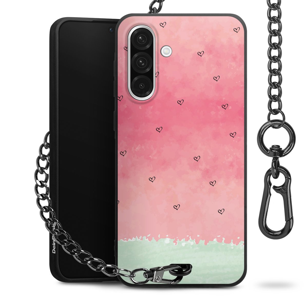 • Mattschwarze Handyhülle mit Metallkette