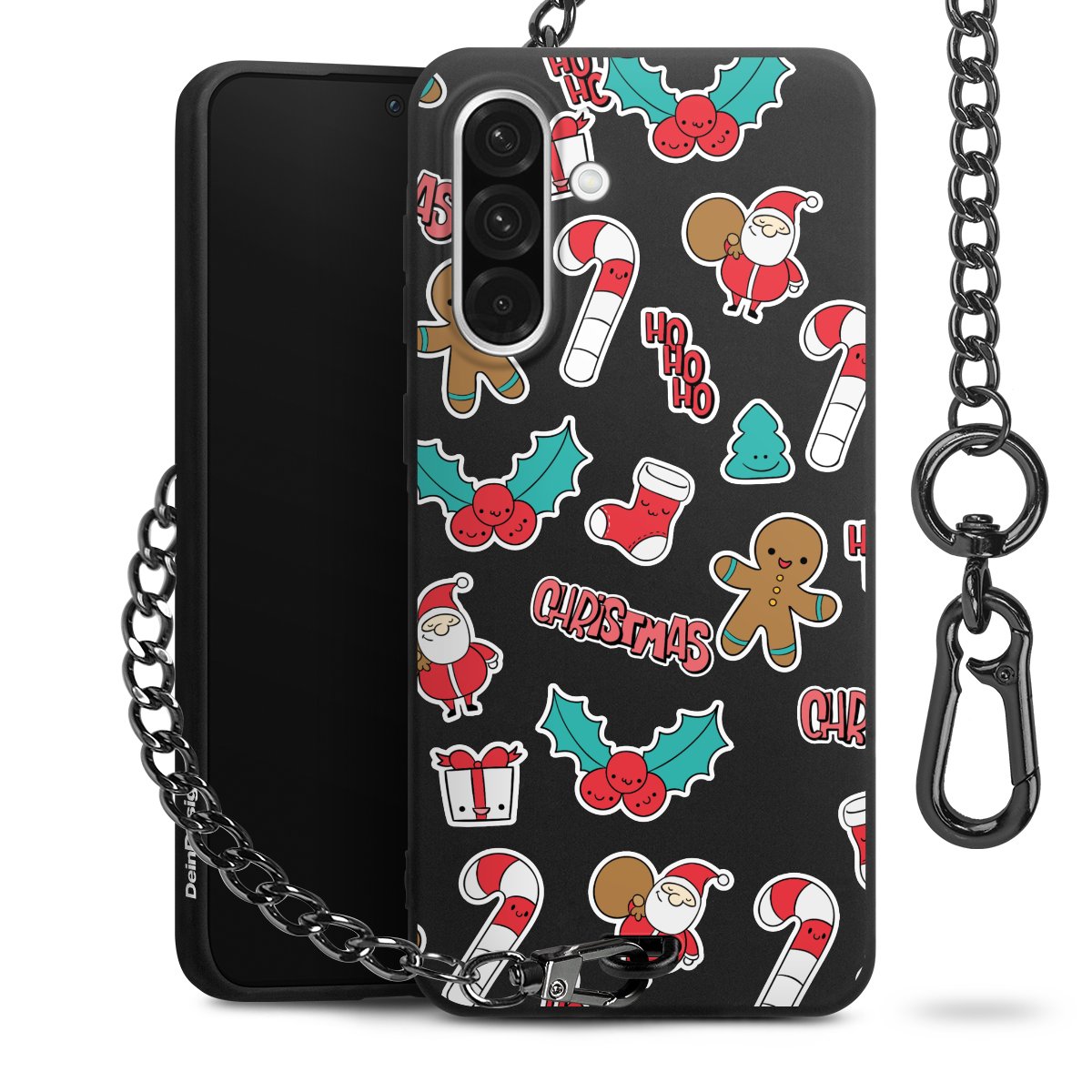 Die mattschwarze Silikon-Handyhülle besteht aus robustem TPU (thermoplastisches Polyurethan). Sie ist flexibel und schützt Dein Smartphone vor Stößen und Kratzern. Die Kette sowie der Karabinerhaken sind aus Metall in Gunmetal-Optik gefertigt. Für dieses Produkt kommen ausschließlich TÜV-geprüfte Materialien zum Einsatz.