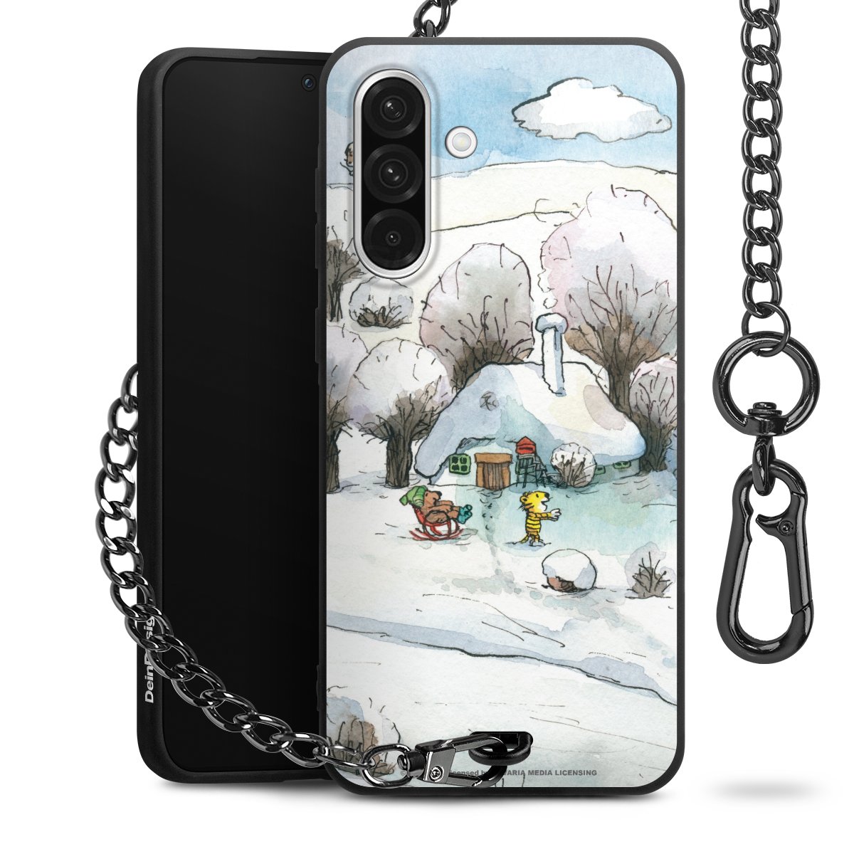 Die mattschwarze Silikon-Handyhülle besteht aus robustem TPU (thermoplastisches Polyurethan). Sie ist flexibel und schützt Dein Smartphone vor Stößen und Kratzern. Die Kette sowie der Karabinerhaken sind aus Metall in Gunmetal-Optik gefertigt. Für dieses Produkt kommen ausschließlich TÜV-geprüfte Materialien zum Einsatz.
