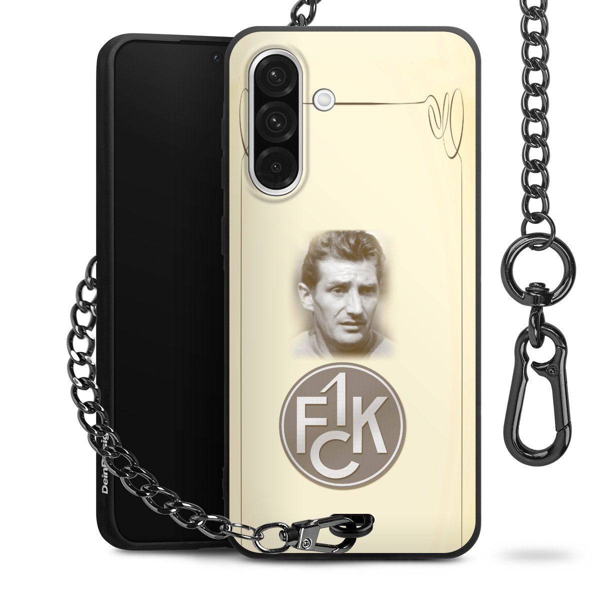 Die Handyhülle verfügt über eine mittig am unteren Rand platzierte Öse, an der die Metallkette stabil befestigt ist. Bestelle die Hülle einfach für Dein Smartphone-Modell, dann passt sie wie angegossen und Du brauchst sie bloß einmal anzudrücken. Handy in die Tasche, Karabiner an den Hosenbund – schon kann die Party starten.
