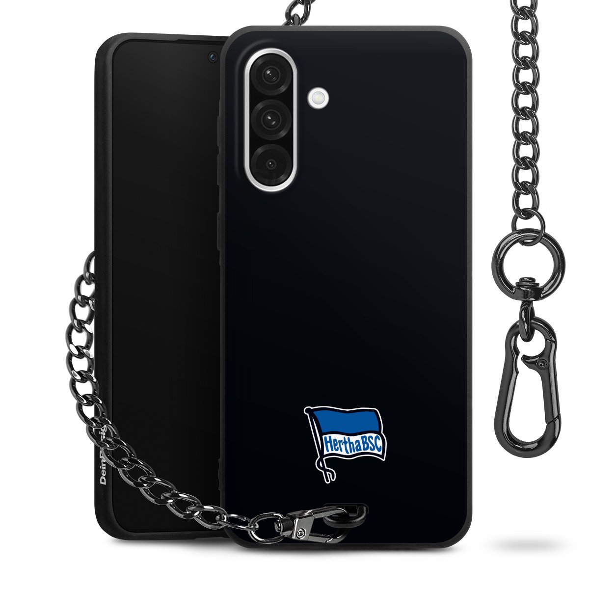 Die mattschwarze Silikon-Handyhülle besteht aus robustem TPU (thermoplastisches Polyurethan). Sie ist flexibel und schützt Dein Smartphone vor Stößen und Kratzern. Die Kette sowie der Karabinerhaken sind aus Metall in Gunmetal-Optik gefertigt. Für dieses Produkt kommen ausschließlich TÜV-geprüfte Materialien zum Einsatz.