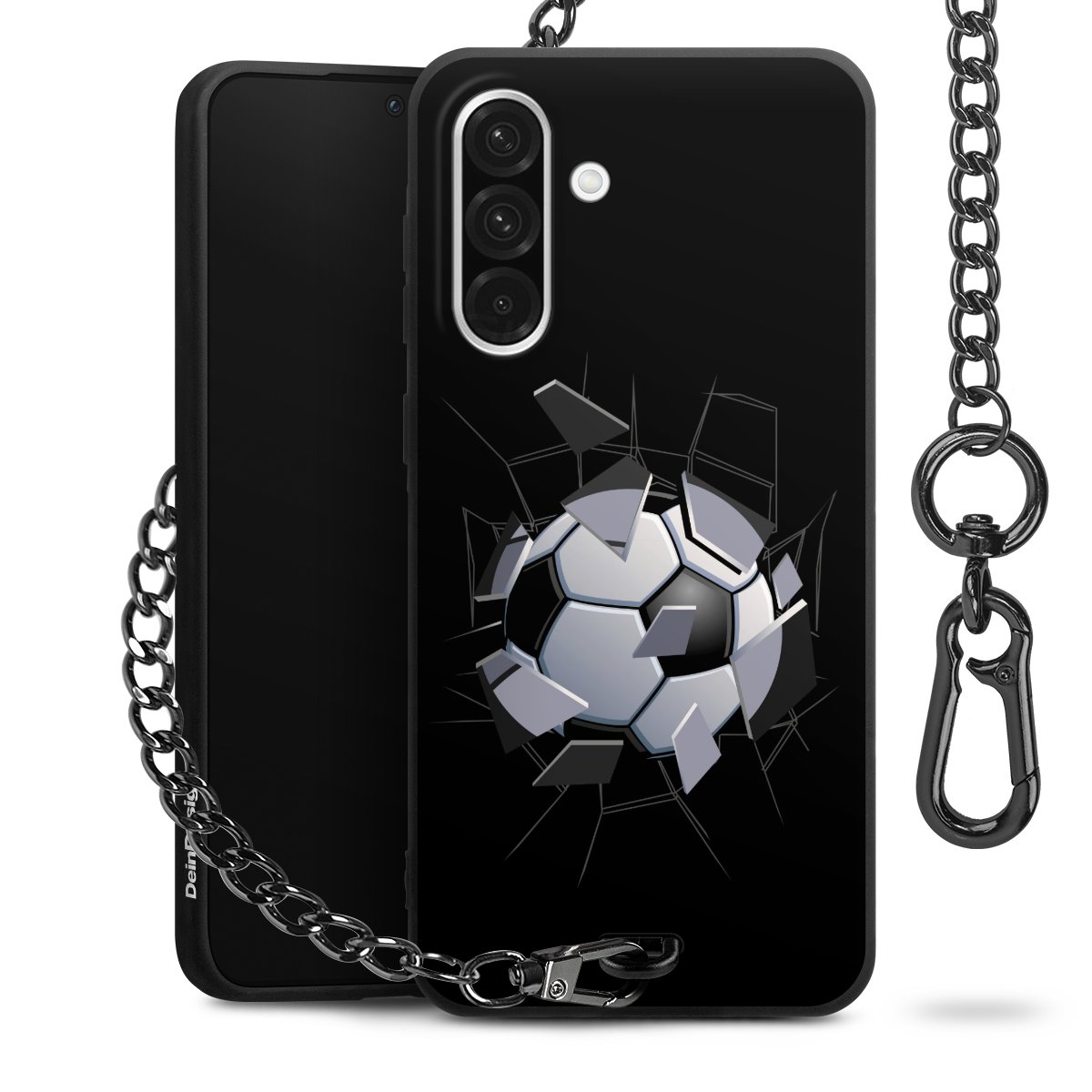 - Mattschwarze Handyhülle mit Metallkette