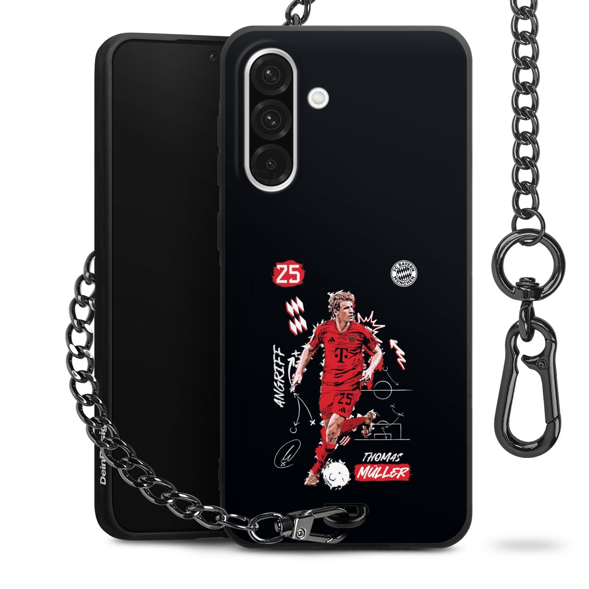 • Mattschwarze Handyhülle mit Metallkette