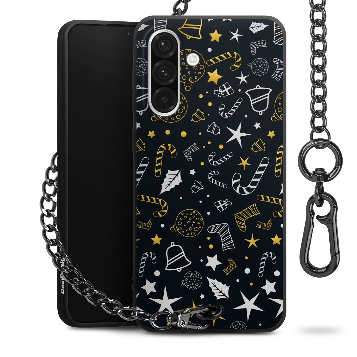 - Mattschwarze Handyhülle mit Metallkette