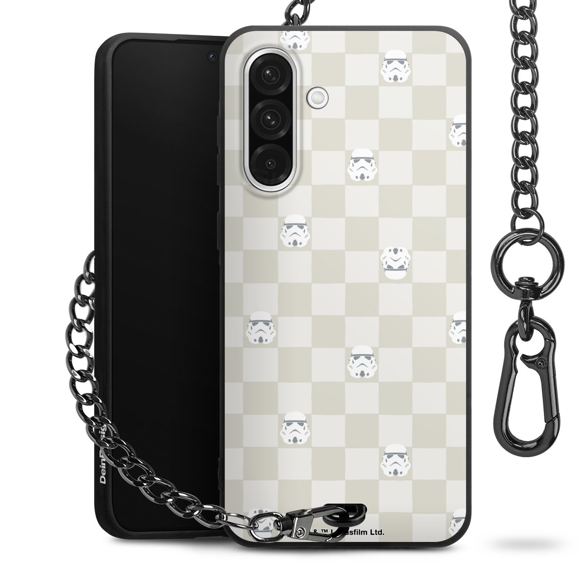 Die mattschwarze Silikon-Handyhülle besteht aus robustem TPU (thermoplastisches Polyurethan). Sie ist flexibel und schützt Dein Smartphone vor Stößen und Kratzern. Die Kette sowie der Karabinerhaken sind aus Metall in Gunmetal-Optik gefertigt. Für dieses Produkt kommen ausschließlich TÜV-geprüfte Materialien zum Einsatz.