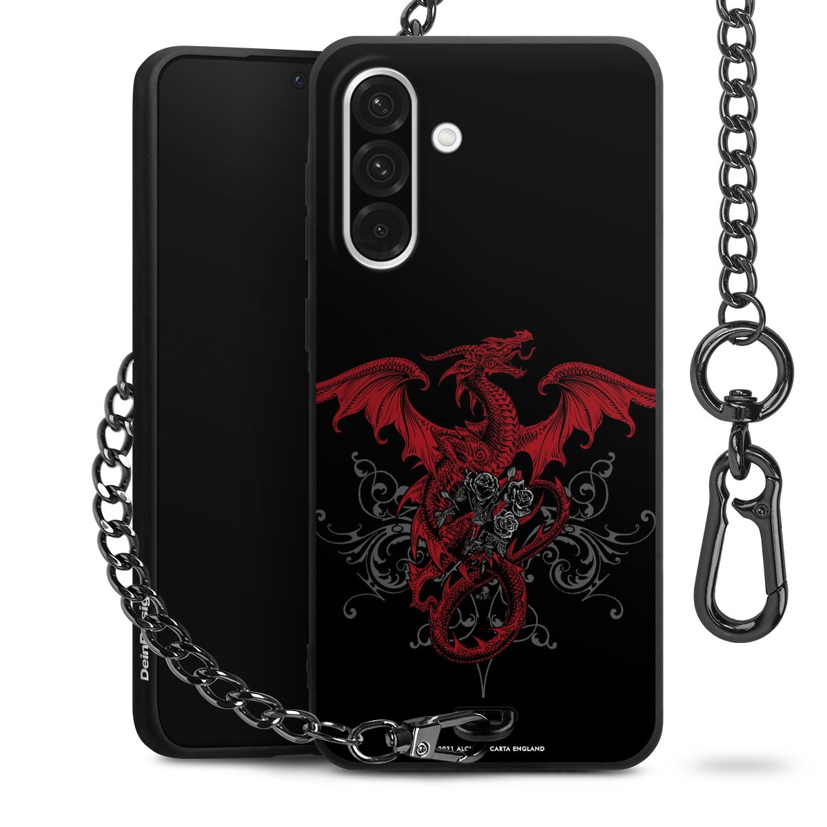 Die mattschwarze Silikon-Handyhülle besteht aus robustem TPU (thermoplastisches Polyurethan). Sie ist flexibel und schützt Dein Smartphone vor Stößen und Kratzern. Die Kette sowie der Karabinerhaken sind aus Metall in Gunmetal-Optik gefertigt. Für dieses Produkt kommen ausschließlich TÜV-geprüfte Materialien zum Einsatz.