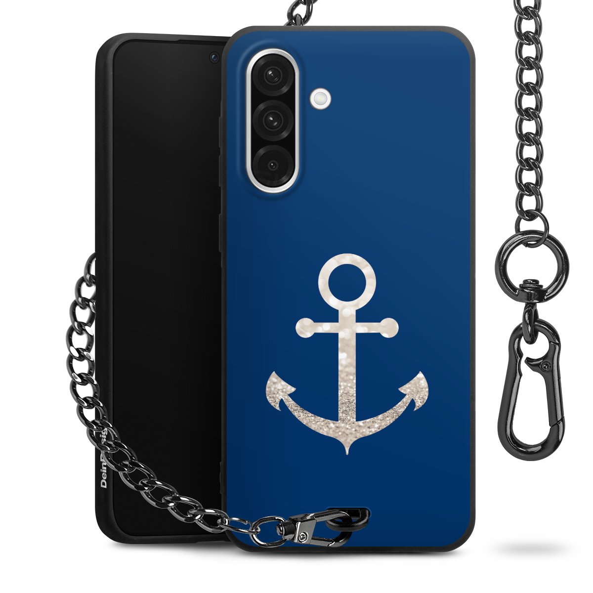 - Mattschwarze Handyhülle mit Metallkette