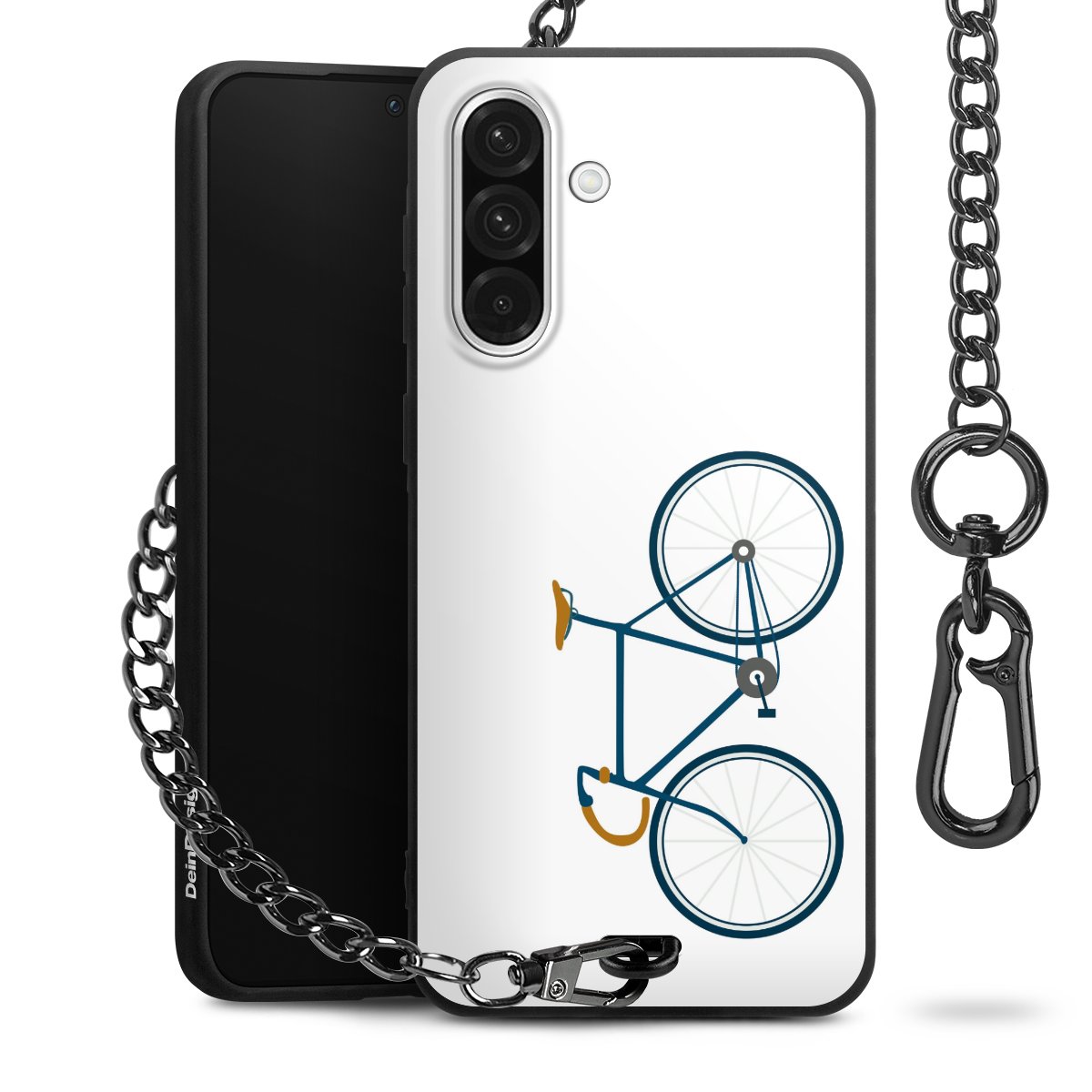 - Mattschwarze Handyhülle mit Metallkette