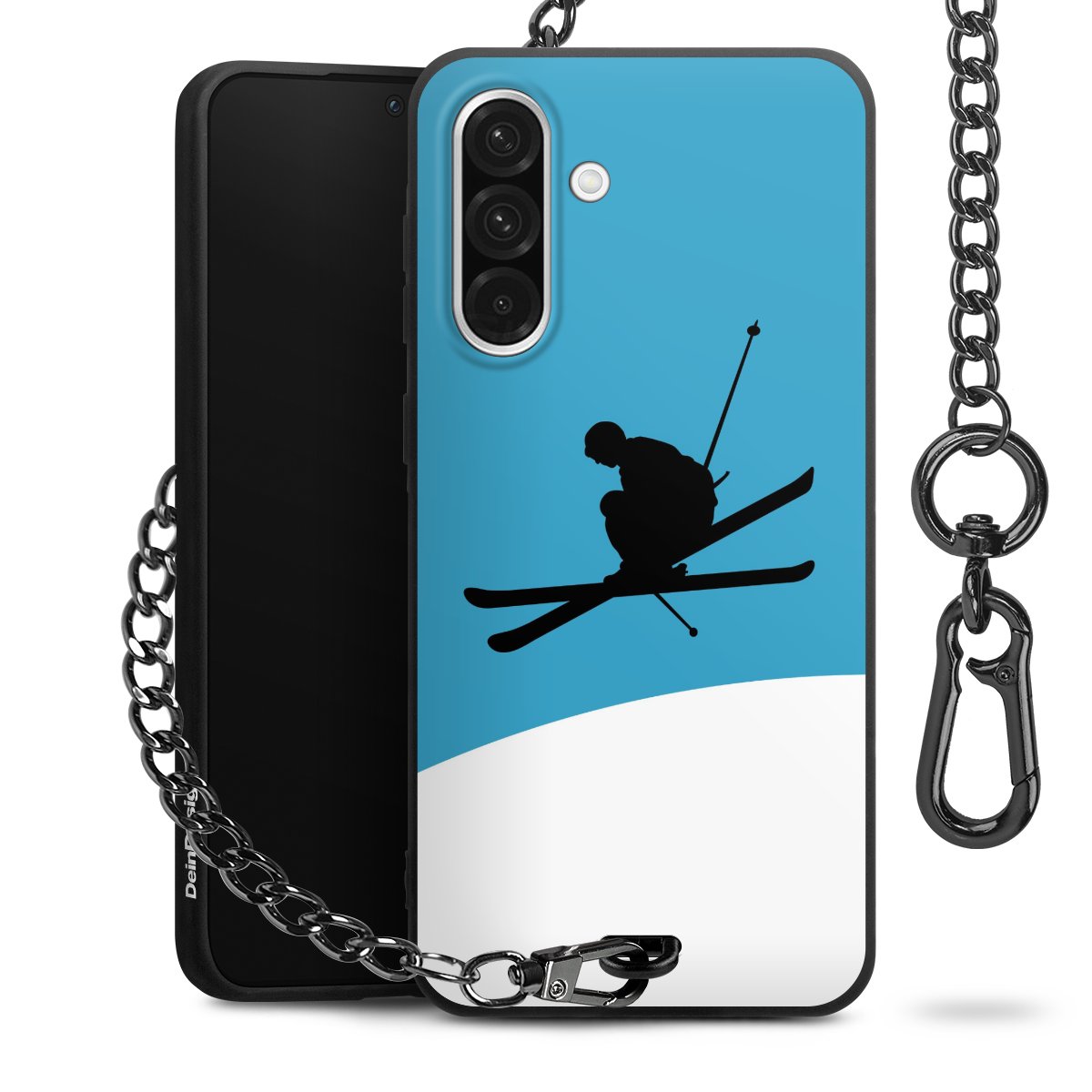 Die mattschwarze Silikon-Handyhülle besteht aus robustem TPU (thermoplastisches Polyurethan). Sie ist flexibel und schützt Dein Smartphone vor Stößen und Kratzern. Die Kette sowie der Karabinerhaken sind aus Metall in Gunmetal-Optik gefertigt. Für dieses Produkt kommen ausschließlich TÜV-geprüfte Materialien zum Einsatz.