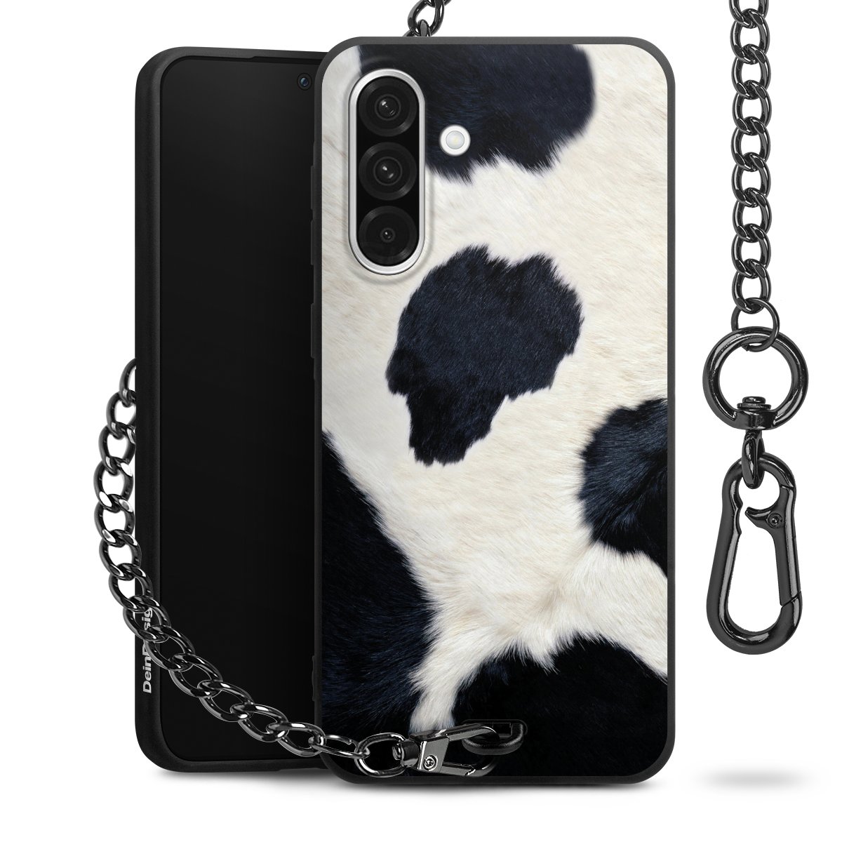 - Mattschwarze Handyhülle mit Metallkette
