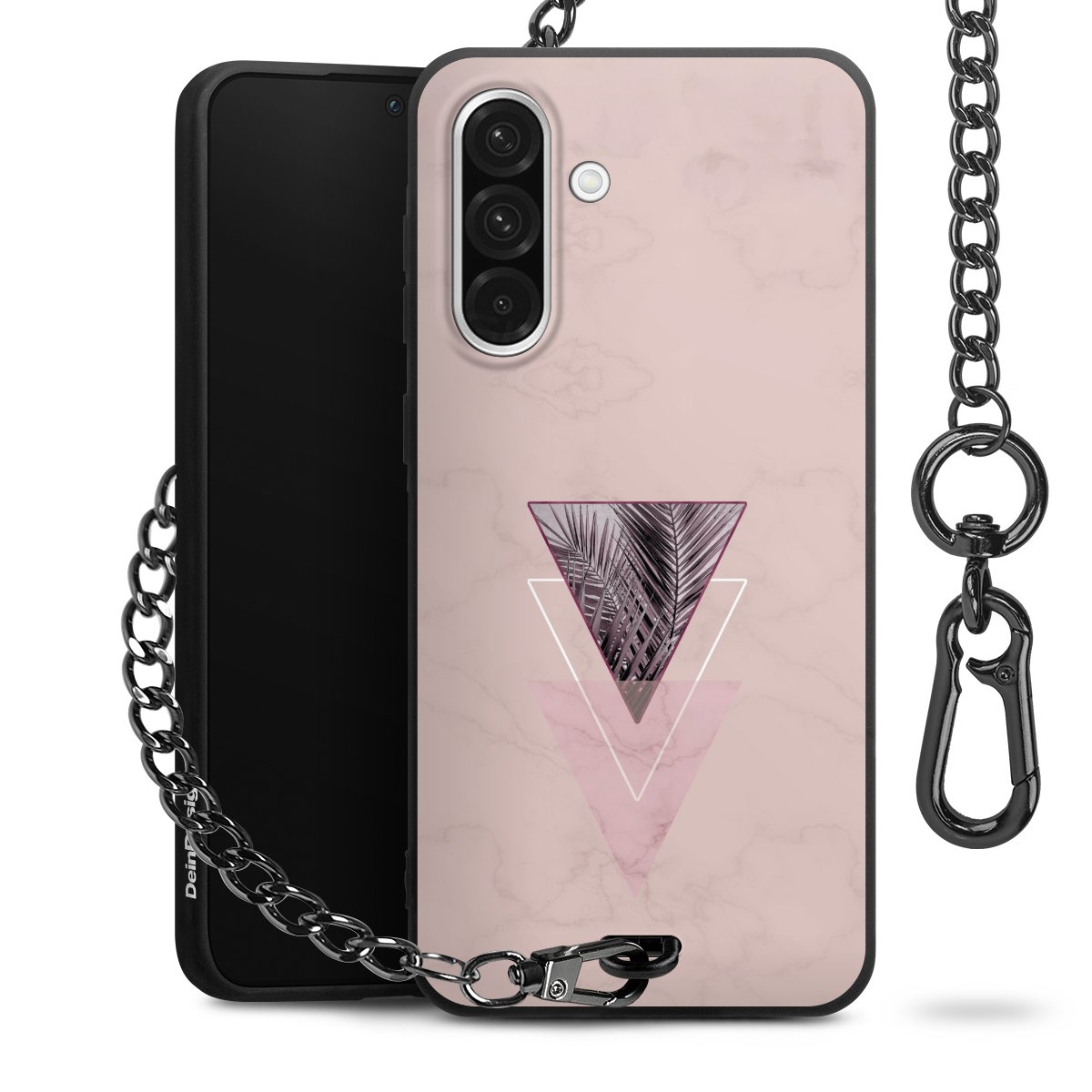 • Mattschwarze Handyhülle mit Metallkette