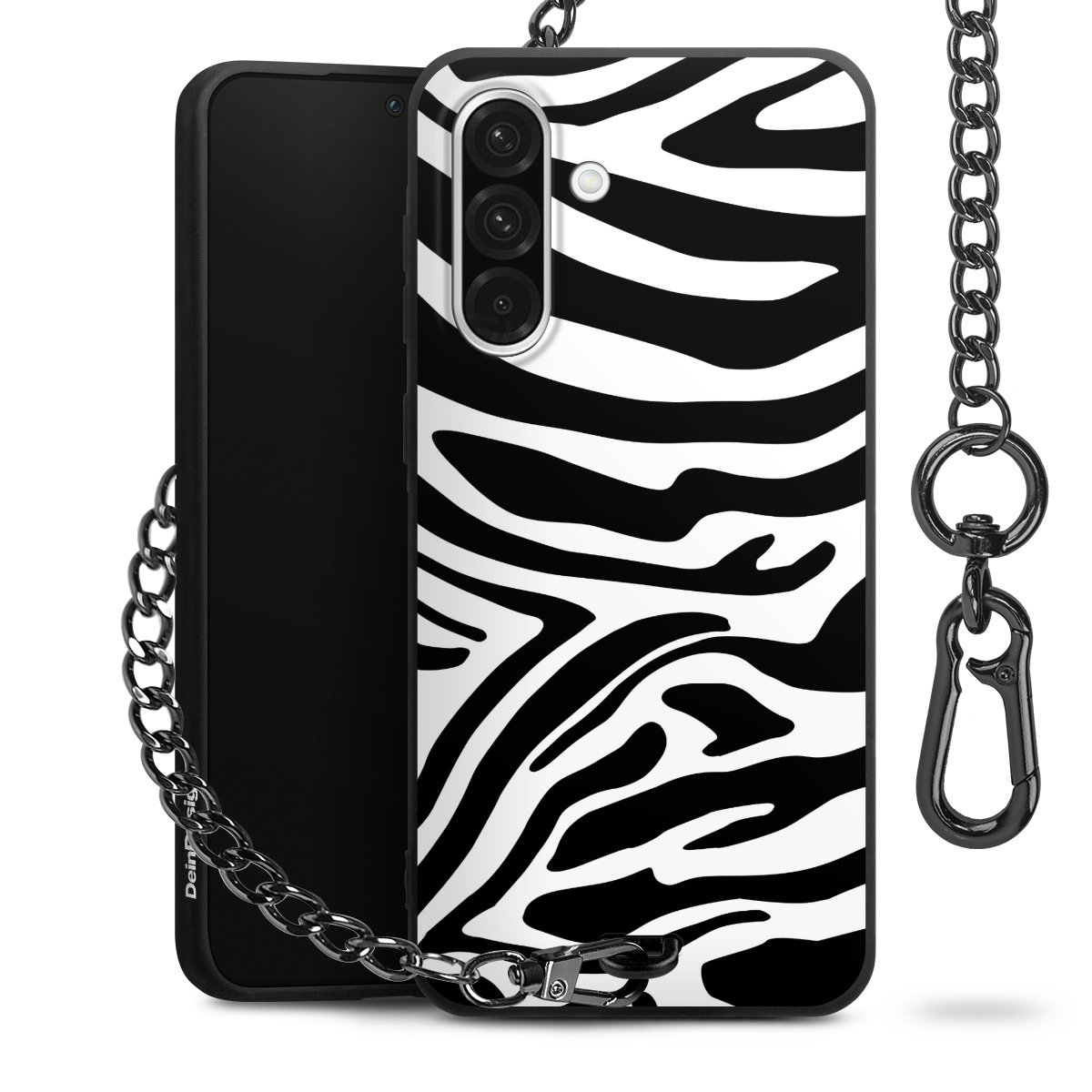 Die mattschwarze Silikon-Handyhülle besteht aus robustem TPU (thermoplastisches Polyurethan). Sie ist flexibel und schützt Dein Smartphone vor Stößen und Kratzern. Die Kette sowie der Karabinerhaken sind aus Metall in Gunmetal-Optik gefertigt. Für dieses Produkt kommen ausschließlich TÜV-geprüfte Materialien zum Einsatz.