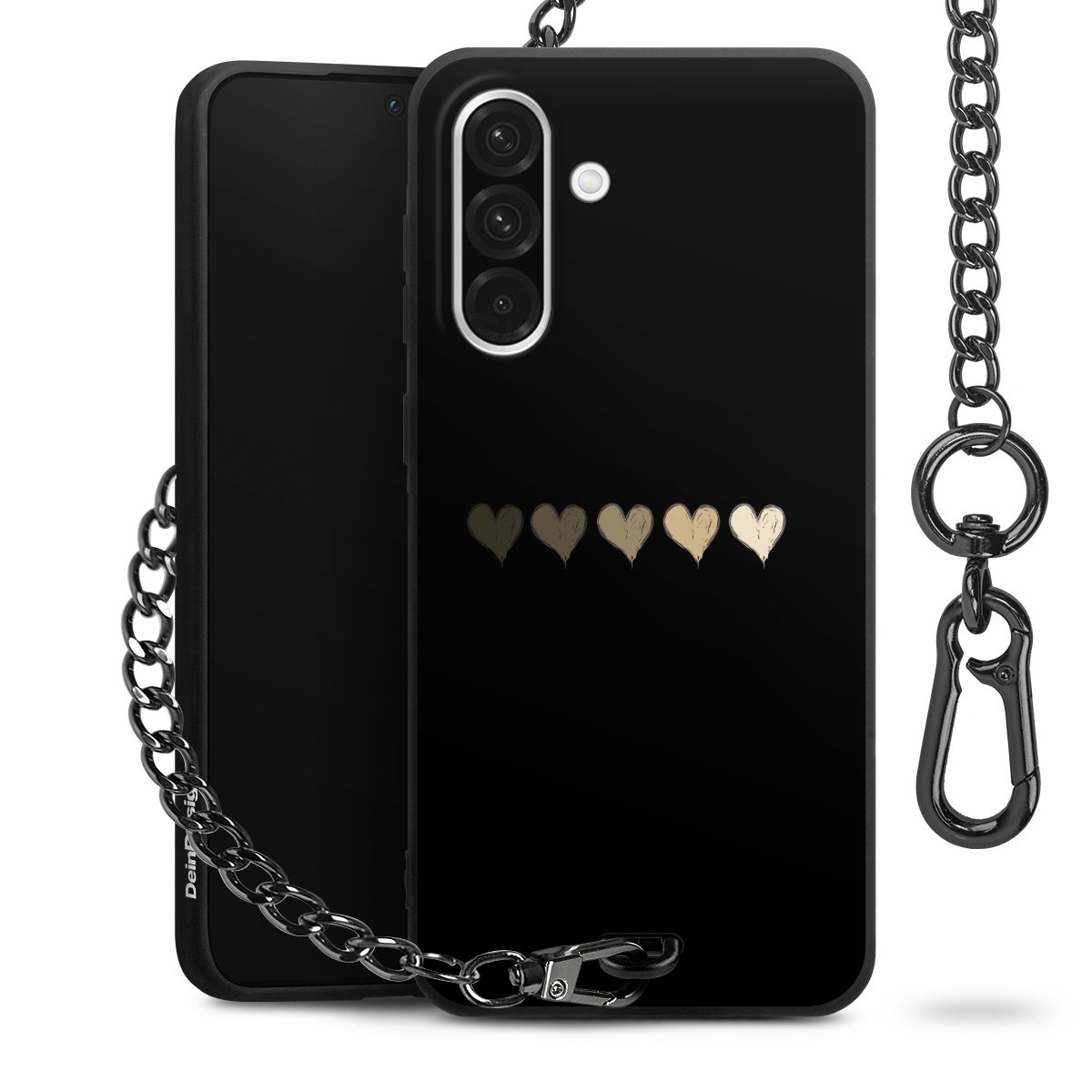 - Mattschwarze Handyhülle mit Metallkette