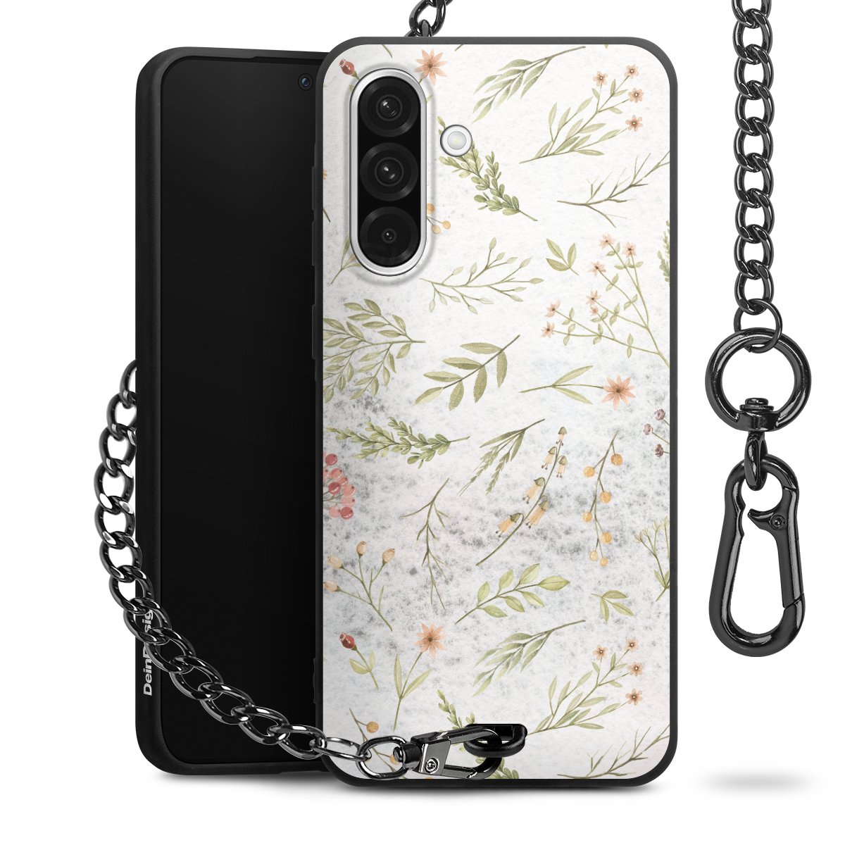 - Mattschwarze Handyhülle mit Metallkette