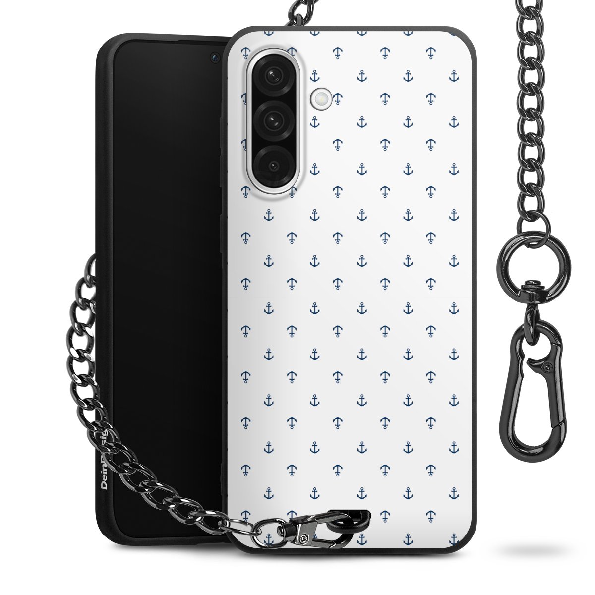 - Mattschwarze Handyhülle mit Metallkette