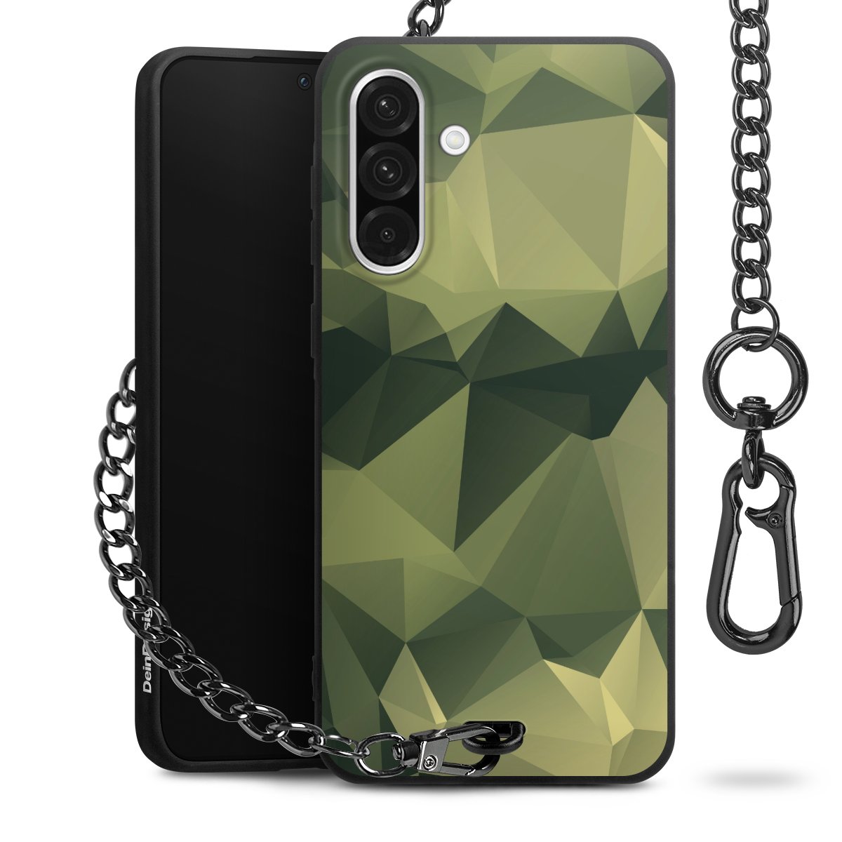 Die mattschwarze Silikon-Handyhülle besteht aus robustem TPU (thermoplastisches Polyurethan). Sie ist flexibel und schützt Dein Smartphone vor Stößen und Kratzern. Die Kette sowie der Karabinerhaken sind aus Metall in Gunmetal-Optik gefertigt. Für dieses Produkt kommen ausschließlich TÜV-geprüfte Materialien zum Einsatz.