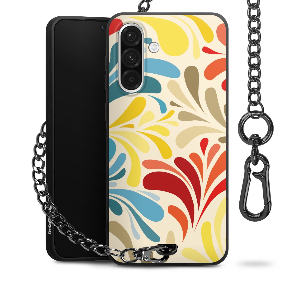 - Mattschwarze Handyhülle mit Metallkette