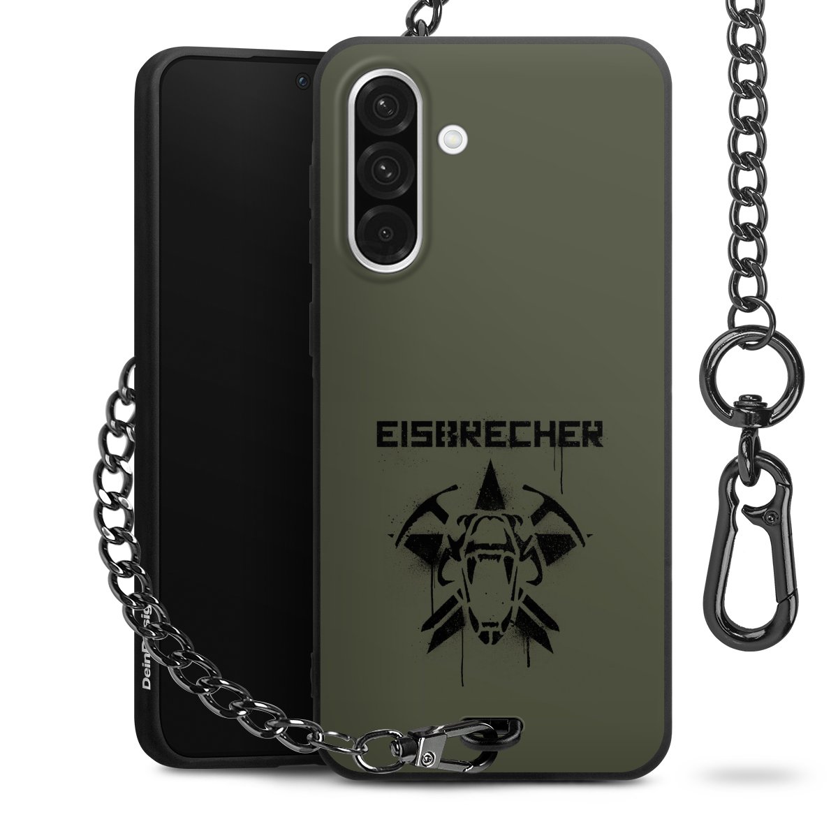 Die mattschwarze Silikon-Handyhülle besteht aus robustem TPU (thermoplastisches Polyurethan). Sie ist flexibel und schützt Dein Smartphone vor Stößen und Kratzern. Die Kette sowie der Karabinerhaken sind aus Metall in Gunmetal-Optik gefertigt. Für dieses Produkt kommen ausschließlich TÜV-geprüfte Materialien zum Einsatz.
