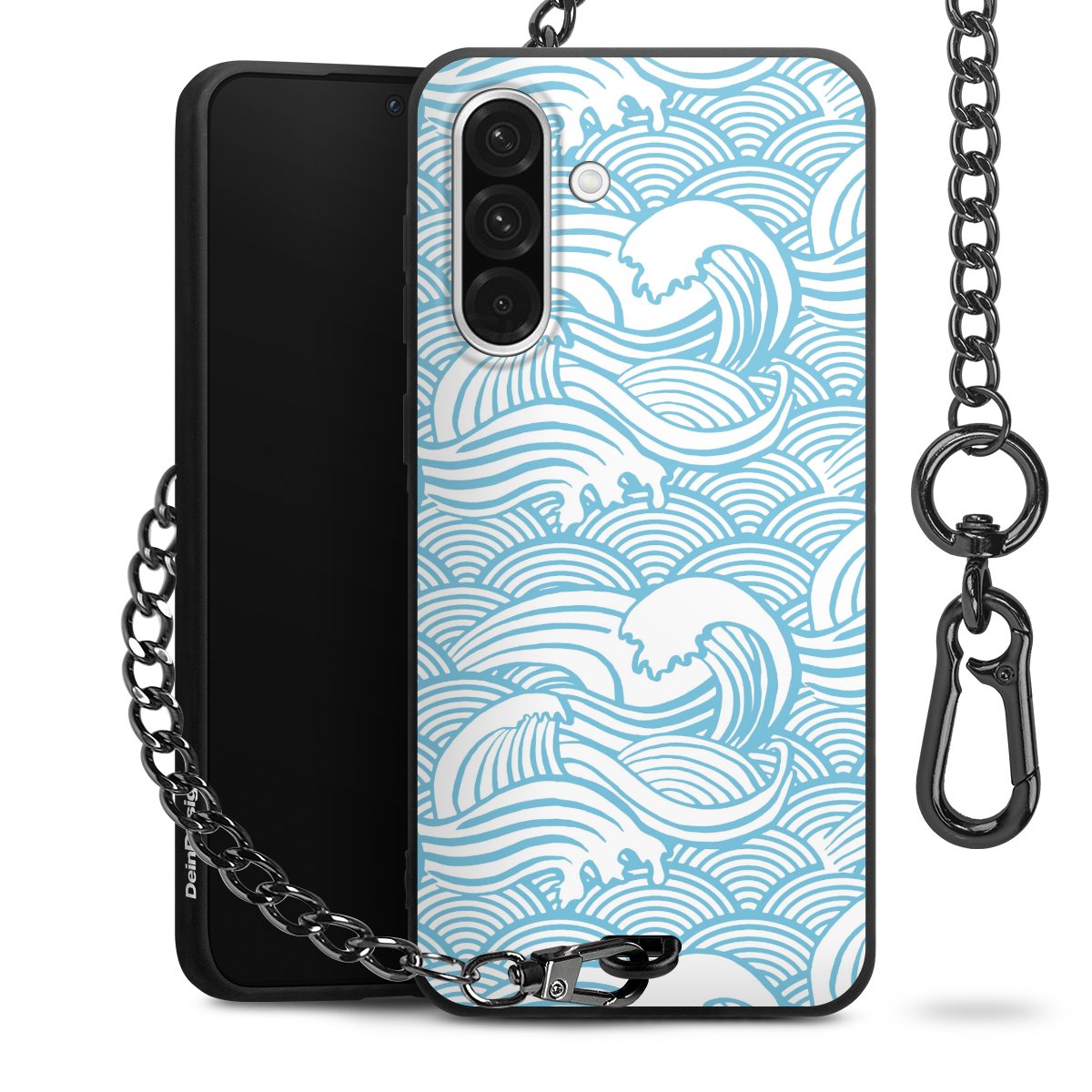 • Mattschwarze Handyhülle mit Metallkette