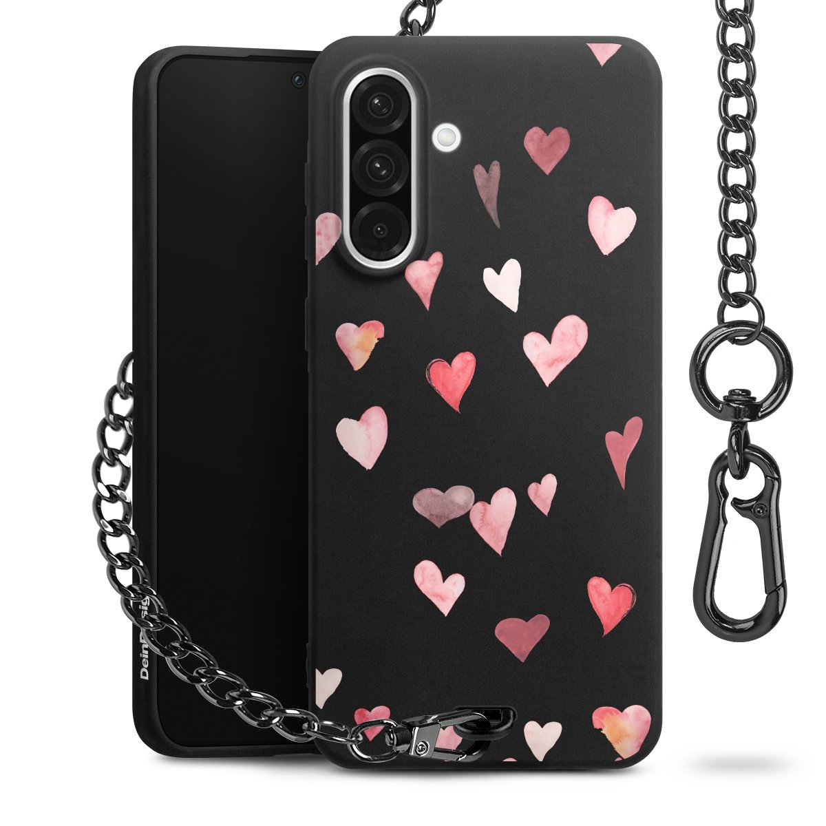• Mattschwarze Handyhülle mit Metallkette
