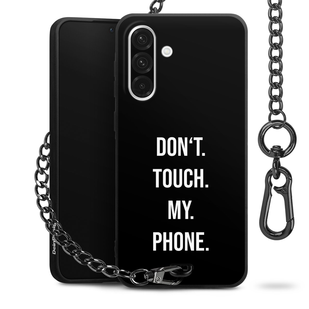 Die mattschwarze Silikon-Handyhülle besteht aus robustem TPU (thermoplastisches Polyurethan). Sie ist flexibel und schützt Dein Smartphone vor Stößen und Kratzern. Die Kette sowie der Karabinerhaken sind aus Metall in Gunmetal-Optik gefertigt. Für dieses Produkt kommen ausschließlich TÜV-geprüfte Materialien zum Einsatz.