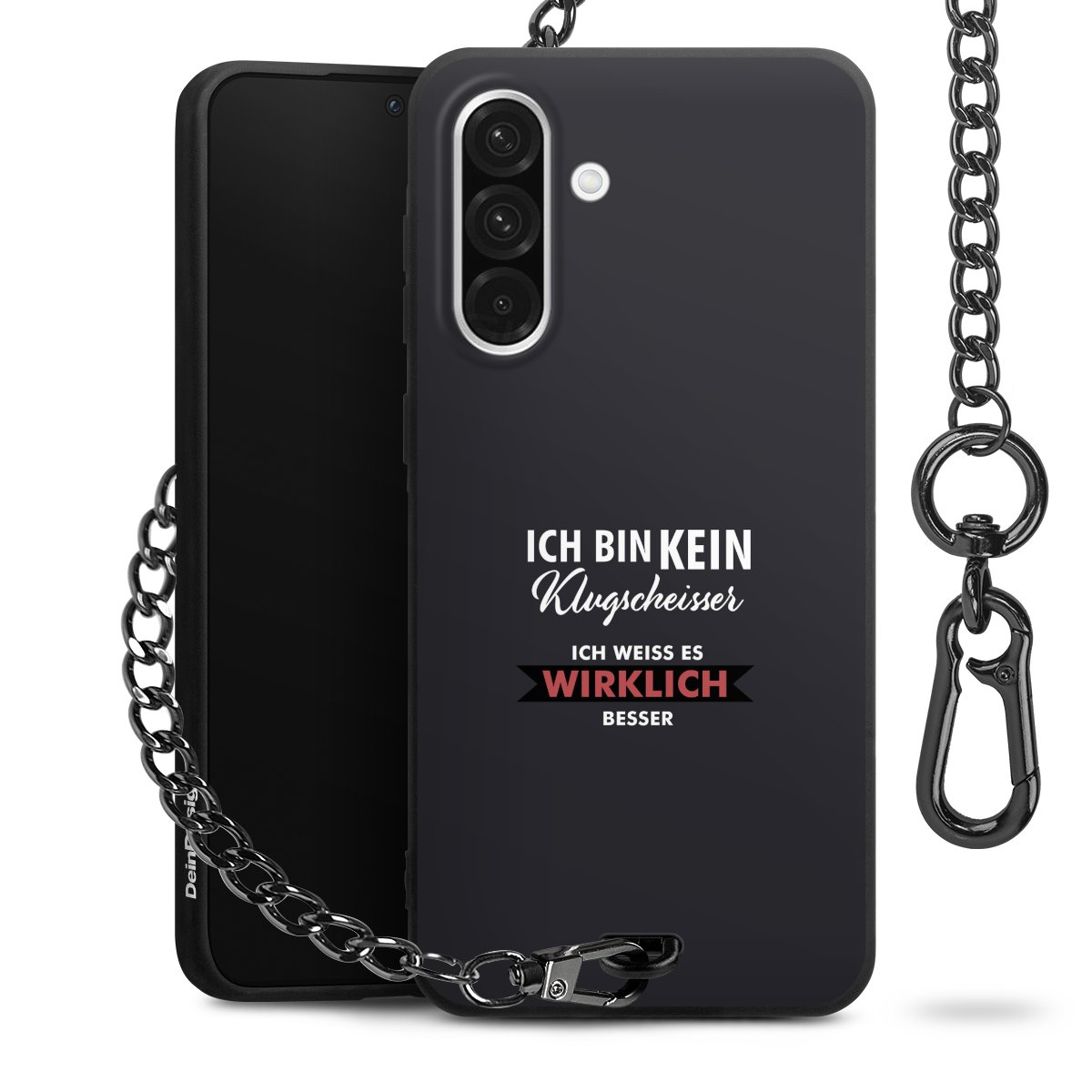 - Mattschwarze Handyhülle mit Metallkette