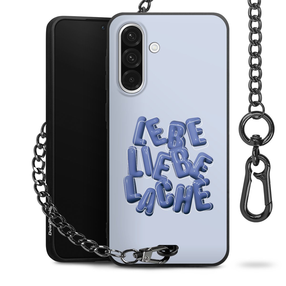 Die mattschwarze Silikon-Handyhülle besteht aus robustem TPU (thermoplastisches Polyurethan). Sie ist flexibel und schützt Dein Smartphone vor Stößen und Kratzern. Die Kette sowie der Karabinerhaken sind aus Metall in Gunmetal-Optik gefertigt. Für dieses Produkt kommen ausschließlich TÜV-geprüfte Materialien zum Einsatz.