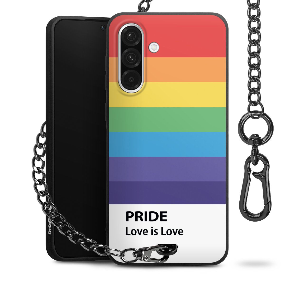 Die mattschwarze Silikon-Handyhülle besteht aus robustem TPU (thermoplastisches Polyurethan). Sie ist flexibel und schützt Dein Smartphone vor Stößen und Kratzern. Die Kette sowie der Karabinerhaken sind aus Metall in Gunmetal-Optik gefertigt. Für dieses Produkt kommen ausschließlich TÜV-geprüfte Materialien zum Einsatz.