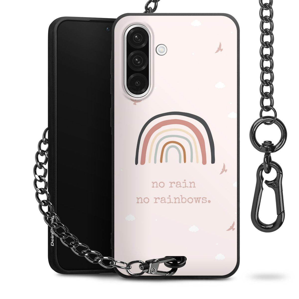 - Mattschwarze Handyhülle mit Metallkette
