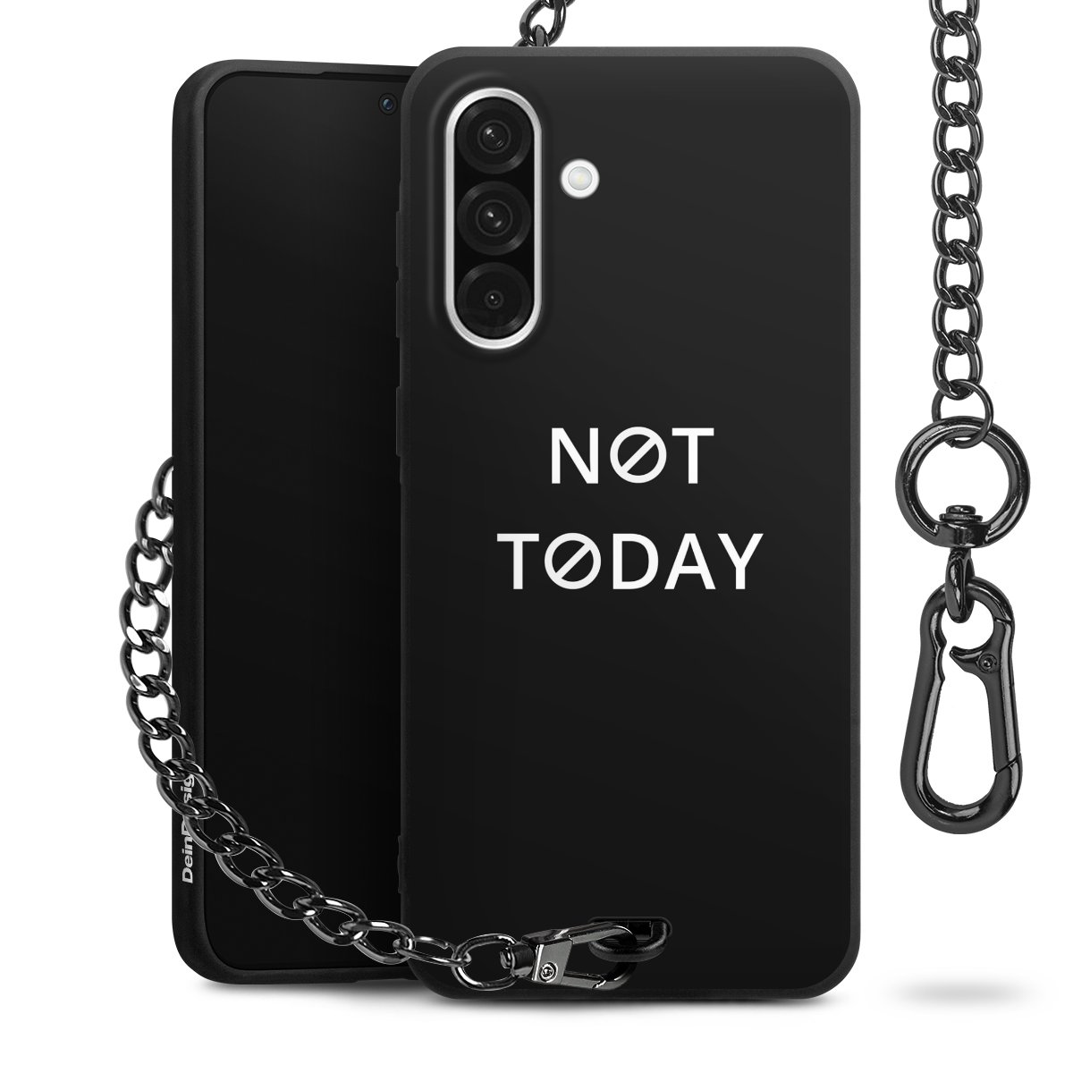 - Mattschwarze Handyhülle mit Metallkette
