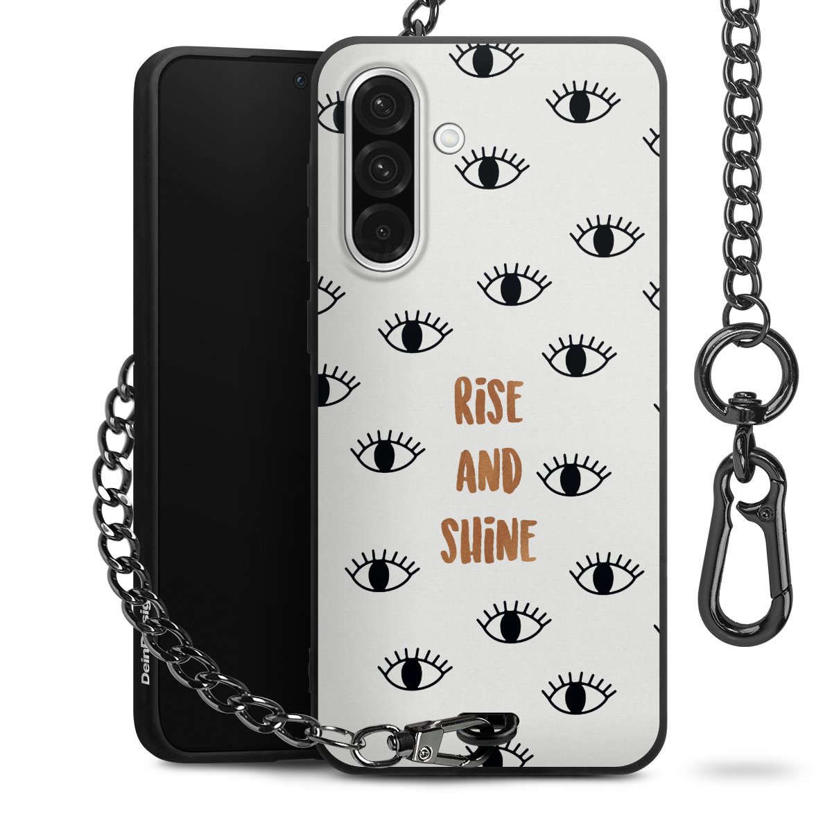 • Mattschwarze Handyhülle mit Metallkette